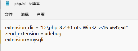 extension_dir = "D:\php-8.2.30-nts-Win32-vs16-x64\ext"