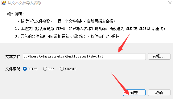 从文本文件中导入名称批量修改文件名,适用于先将文件名称导出来,保存到文本文档中,然后在此文档中修改好文件名称,再导入软件中进行批量修改文件名。